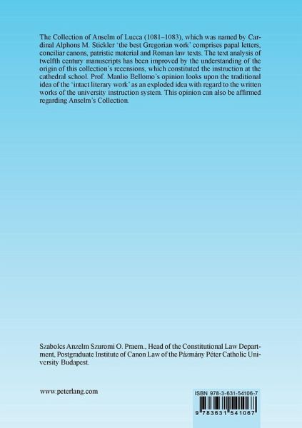 «Judging from the language and the information in it contained [...] the present volume is of interest not only to the increasing tribe of 'studiosi' on medieval canon law collections, whose membersip by the way has been consistently increasing in recent times, but also to professors and students engaged in canonical studies. In fact, the readership of this scholarly work, even if intended primarily for experts, will greatly benefit also those who are not necessarily professional canonists. [...] Congratulations to the author, Prof. Szuromi, and to Peter Lang publications for this new volume that comes to increase their 'Adnotationes in Ius Canonicum' collection and speaks loudly of Anselm of Lucca as a canonist.» (Philippiniana sacra)