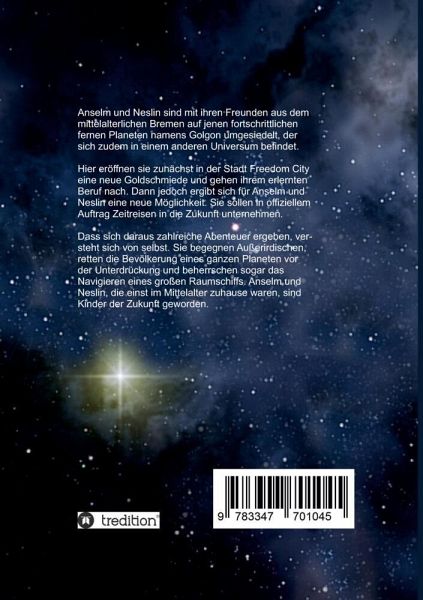 Anselm und Neslin sind mitsamt ihren Bremer Freunden aus der mittelalterlichen Welt auf jenen fortschrittlichen fernen Planeten namens Golgon umgesiedelt, der sich zudem in einem anderen Universum befindet. Hier eröffnen sie zunächst gemeinsam in der Stadt Freedom City eine neue Goldschmiede und gehen ihrem erlernten Beruf nach. Dann jedoch ergibt sich für Anselm und Neslin eine neue Möglichkeit. Sie sollen in offiziellem Auftrag Zeitreisen in die Zukunft unternehmen.Dass sich daraus zahlreiche Abenteuer ergeben, versteht sich von selbst. So geraten sie in Kontakt mit den sogenannten Warlords, die einst die Menschheit bedrohten und die sich selbst Tribaten nennen. Es gelingt Anselm und Neslin, dauerhaften Frieden zu stiften und die technische Überlegenheit der Tribaten zu nutzen. In der Zukunft des neuen Planeten Superior erleben sie die Gefahr einer fehlgeleitete künstlichen Intelligenz. Ihre heimatliche Erde wird von einer zukünftigen schrecklichen Naturkatastrophe heimgesucht.Sie lernen fiese krokodilähnliche Außerirdische kennen, entgehen knapp einer über sie verhängten Todesstrafe und schlittern in ihr nächstes Abenteuer mit ungnädigen Unsichtbaren. Zu allem Überfluss erfahren sie bei einer Zeitreise in die 10.000-jährige Zukunft von Golgon, dass intelligente Außerirdische auch künstliche Eiszeiten erzeugen können.Zwischenzeitlich reisen sie hin und wieder in ihr mittelalterliches Dorf und kümmern sich dort um ihre Familien. Dann verstirbt Anselms Vater und auch die Familien von Anselm und Neslin entschließen sich, ihren Kindern in die neue Welt zu folgen.Viele Berichte in den Medien begleiten Anselm und Neslin auf ihren Wegen durch Raum und Zeit und so werden sie schließlich zu Personen des öffentlichen Interesses. Am Ende erleben beide trotz ihrer jungen Jahre eine erstaunliche Karriere. Anselm und Neslin, die einst im Mittelalter zuhause waren, sind erfolgreiche Kinder der Zukunft geworden.