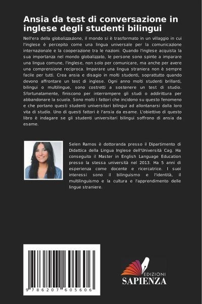 Nell'era della globalizzazione, il mondo si è trasformato in un villaggio in cui l'inglese è percepito come una lingua universale per la comunicazione internazionale e la cooperazione tra le nazioni. Quando l'inglese acquista la sua importanza nel mondo globalizzato, le persone sono spinte a imparare una lingua comune, l'inglese, non solo per comunicare, ma anche per avere una comprensione reciproca. Imparare una lingua straniera non è sempre facile per tutti. Crea ansia e disagio in molti studenti, soprattutto quando devono affrontare un test di inglese. Ogni anno molti studenti brillanti, bilingui o multilingue, sono costretti a sostenere un test di studio. Sfortunatamente, finiscono per interrompere gli studi o addirittura per abbandonare la scuola. Sono molti i fattori che incidono su questo fenomeno e che portano questi studenti universitari bilingui ad allontanarsi dalla loro vita di studio. Uno di questi fattori è l'ansia da esame. L'obiettivo di questo libro è indagare se gli studenti universitari bilingui soffrono di ansia da esame.