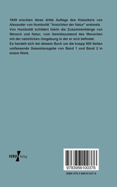 Von Humboldt schildert hierin die Zusammenhänge von Mensch und Natur, vom Gemütszustand des Menschen mit der natürlichen Umgebung in der er sich befindet.