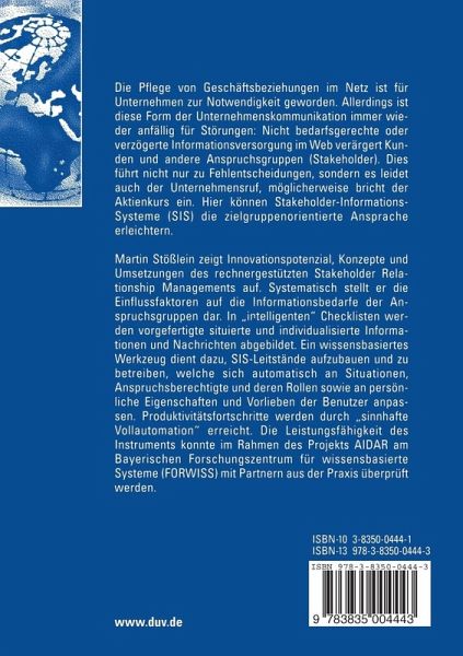 Die Pflege von Geschäftsbeziehungen im Netz ist für Unternehmen zur Notwendigkeit geworden. Allerdings ist diese Form der Unternehmenskommunikation immer wieder anfällig für Störungen: Nicht bedarfsgerechte oder verzögerte Informationsversorgung im Web verärgert Kunden und andere Anspruchsgruppen (Stakeholder). Dies führt nicht nur zu Fehlentscheidungen, sondern es leidet auch der Unternehmensruf, möglicherweise bricht der Aktienkurs ein. Hier können Stakeholder-Informations-Systeme (SIS) die zielgruppenorientierte Ansprache erleichtern.
