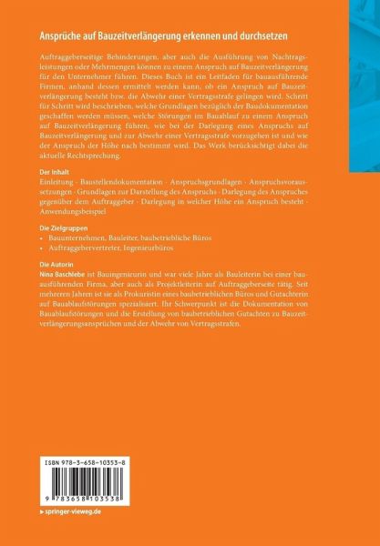 Auftraggeberseitige Behinderungen, aber auch die Ausführung von Nachtragsleistungen oder Mehrmengen können zu einem Anspruch auf Bauzeitverlängerung für den Unternehmer führen. Das Buch ist ein Leitfaden für bauausführende Firmen, anhand dessen ermittelt werden kann, ob ein Anspruch auf Bauzeitverlängerung besteht bzw. die Abwehr einer Vertragsstrafe gelingen wird. Es wird Schritt für Schritt für den Baupraktiker beschrieben, a) welche Grundlagen bezüglich der Baustellendokumentation geschaffen werden müssen, b) welche Störungen im Bauablauf zu einem Anspruch auf Bauzeitverlängerung führen, c) wie bei der Darlegung eines Anspruches auf Bauzeitverlängerung und zur Abwehr einer Vertragsstrafe vorzugehen ist und d) wie der Bauzeitverlängerungsanspruch der Höhe nach bestimmt wird. Hierzu sind die gemäß baurechtlicher Literatur und aktueller Rechtsprechung vorliegenden rechtlichen Anforderungen in einem Werk zusammengefasst und für den Baupraktiker praxisbezogen und leicht verständlich aufbereitet.