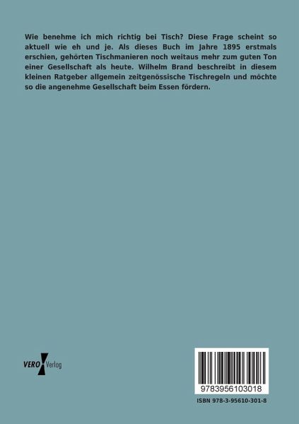 Wie benehme ich mich richtig bei Tisch? Diese Frage scheint so aktuell wie eh und je. Als dieses Buch im Jahre 1895 erstmals erschien, gehörten Tischmanieren noch weitaus mehr zum guten Ton einer Gesellschaft als heute. Wilhelm Brand beschreibt in diesem kleinen Ratgeber allgemein zeitgenössische Tischregeln und möchte so die angenehme Gesellschaft beim Essen fördern.