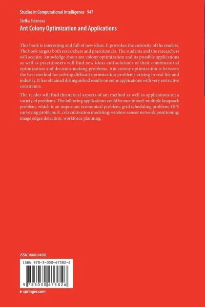 This book is interesting and full of new ideas. It provokes the curiosity of the readers. The book targets both researchers and practitioners. The students and the researchers will acquire knowledge about ant colony optimization and its possible applications as well as practitioners will find new ideas and solutions of their combinatorial optimization and decision-making problems. Ant colony optimization is between the best method for solving difficult optimization problems arising in real life and industry. It has obtained distinguished results on some applications with very restrictive constraints.