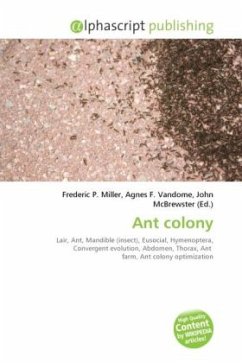 High Quality Content by WIKIPEDIA articles! An ant colony is an underground lair where ants live. Colonies consist of a series of underground chambers, connected to each other and the surface of the earth by small tunnels. There are rooms for nurseries, food storage, and mating. The colony is built and maintained by legions of worker ants, who carry tiny bits of dirt in their mandibles and deposit them near the exit of the colony, forming an ant-hill. Food carried in by workers is retrieved from the surrounding environment and can be traced from colony to colony by the use of isotopes. Ant colonies are eusocial, and are very much like those found in other social Hymenoptera, though the various groups of these developed sociality independently through convergent evolution. Eggs are laid by one or sometimes more queens. Queens are different in structure, they are the largest ones among all ants, especially their abdomen and thorax which are larger than most ants'. Their tasks are to lay eggs and produce more offspring. Most of the eggs that are laid by the queens grow up to become wingless, sterile females called "workers".