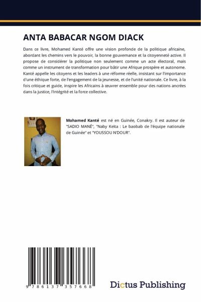Dans ce livre, Mohamed Kanté offre une vision profonde de la politique africaine, abordant les chemins vers le pouvoir, la bonne gouvernance et la citoyenneté active. Il propose de considérer la politique non seulement comme un acte électoral, mais comme un instrument de transformation pour bâtir une Afrique prospère et autonome. Kanté appelle les citoyens et les leaders à une réforme réelle, insistant sur l'importance d'une éthique forte, de l'engagement de la jeunesse, et de l'unité nationale. Ce livre, à la fois critique et guide, inspire les Africains à oeuvrer ensemble pour des nations ancrées dans la justice, l'intégrité et la force collective.