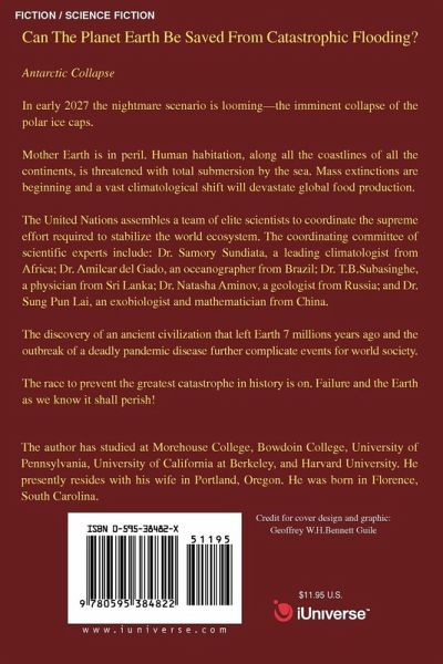Can The Planet Earth Be Saved From Catastrophic Flooding? Antarctic Collapse In early 2027 the nightmare scenario is looming-the imminent collapse of the polar ice caps. Mother Earth is in peril. Human habitation, along all the coastlines of all the continents, is threatened with total submersion by the sea. Mass extinctions are beginning and a vast climatological shift will devastate global food production. The United Nations assembles a team of elite scientists to coordinate the supreme effort required to stabilize the world ecosystem. The coordinating committee of scientific experts include: Dr. Samory Sundiata, a leading climatologist from Africa; Dr. Amilcar del Gado, an oceanographer from Brazil; Dr. T.B.Subasinghe, a physician from Sri Lanka; Dr. Natasha Aminov, a geologist from Russia; and Dr. Sung Pun Lai, an exobiologist and mathematician from China. The discovery of an ancient civilization that left Earth 7 millions years ago and the outbreak of a deadly pandemic disease further complicate events for world society. The race to prevent the greatest catastrophe in history is on. Failure and the Earth as we know it shall perish!