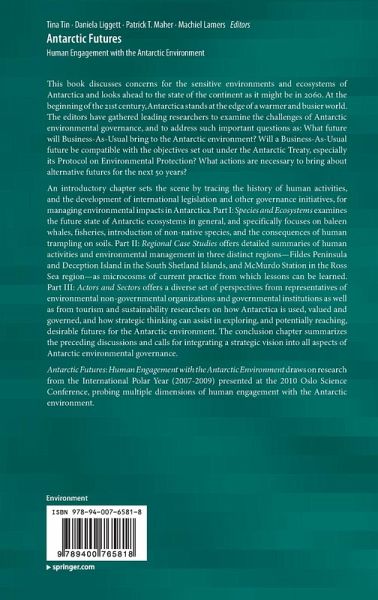 At the beginning of the 21st century, Antarctica is poised at the edge of a warmer and busier world. Leading Antarctic researchers examine the needs and challenges of Antarctic environmental management today and tomorrow. Through: (i) investigating the impacts of human activities on specific ecosystems and species, (ii) examining existing environmental management and monitoring practices in place in various regions and (iii) interrogating stakeholders, they address the following questions: What future will Business-As-Usual bring to the Antarctic environment? Will a Business-As-Usual future be compatible with the objectives set out under the Antarctic Treaty, especially its Protocol on Environmental Protection? What actions are necessary to bring about alternative futures for the next 50 years? This volume is an outcome of the International Polar Year (2007-2009) Oslo Science Conference (8-12, June, 2010).