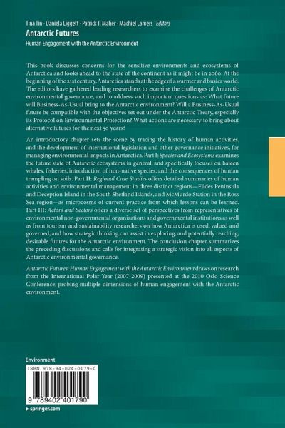 At the beginning of the 21st century, Antarctica is poised at the edge of a warmer and busier world. Leading Antarctic researchers examine the needs and challenges of Antarctic environmental management today and tomorrow. Through: (i) investigating the impacts of human activities on specific ecosystems and species, (ii) examining existing environmental management and monitoring practices in place in various regions and (iii) interrogating stakeholders, they address the following questions: What future will Business-As-Usual bring to the Antarctic environment? Will a Business-As-Usual future be compatible with the objectives set out under the Antarctic Treaty, especially its Protocol on Environmental Protection? What actions are necessary to bring about alternative futures for the next 50 years? This volume is an outcome of the International Polar Year (2007-2009) Oslo Science Conference (8-12, June, 2010).