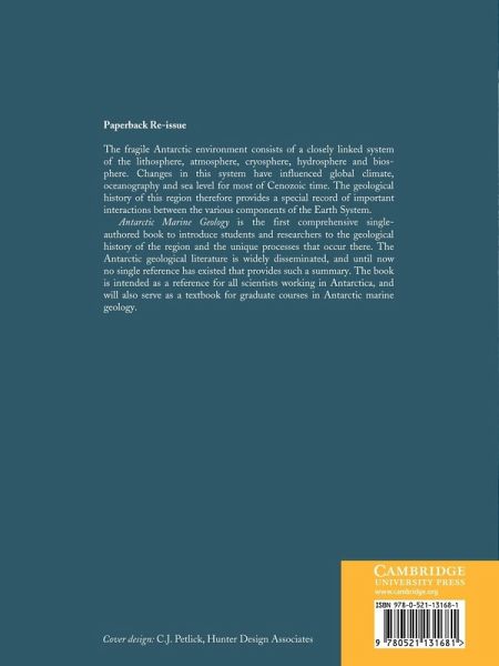 The fragile Antarctic environment consists of a closely linked system of the lithosphere, atmosphere, cryosphere, hydrosphere and biosphere. Changes in this system have influenced global climate, oceanography and sea level for most of Cenozoic time. The geological history of this region therefore provides a special record of important interactions between the various components of the Earth System. Antarctic Marine Geology is a comprehensive single-authored book to introduce students and researchers to the geological history of the region and the unique processes that occur there. Research literature on the region is widely disseminated. The book is intended as a reference for all scientists working in Antarctica, and will also serve as a textbook for graduate courses in Antarctic marine geology.