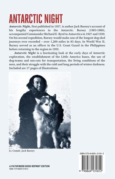 Antarctic Night: One Man's Story of 28,224 Hours at the Bottom of the World, first published in 1957, is author Jack Bursey's account of his lengthy experiences in the Antarctic. Bursey (1903-1980), accompanied Commander Richard E. Byrd to Antarctica in 1927 and 1939. On his second expedition, Bursey would make one of the longest dog-sled journeys ever recorded - over 1,200 miles in 83 days. In World War II, Bursey served as an officer in the U.S. Coast Guard in the Philippines before returning to the region in 1955. Antarctic Night is a fascinating look at the early days of Antarctic exploration, the establishment of the Little America bases, the use of dog-teams and sno-cats for transportation, the living conditions of the men, and their struggle with the cold and long periods of winter darkness. Included are 17 pages of illustrations.