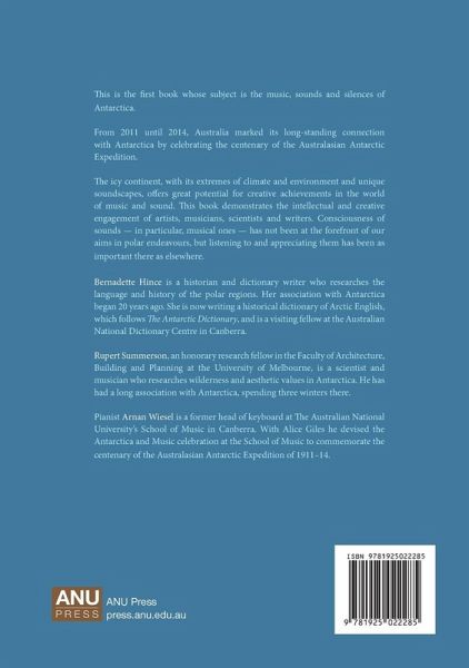 The icy continent, with its extremes of climate and environment and unique soundscapes, offers great potential for creative achievements in the world of music and sound. This book demonstrates the intellectual and creative engagement of artists, musicians, scientists and writers.