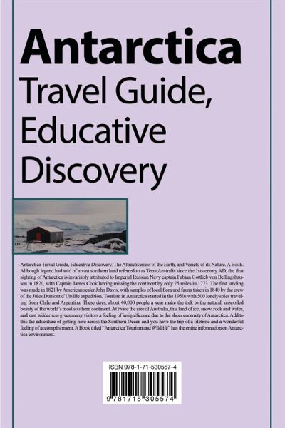 Antarctica Travel Guide, Educative Discovery. The Attractiveness of the Earth, and Variety of its Nature. A Book. Although legend had told of a vast southern land referred to as Terra Australis since the 1st century AD, the first sighting of Antarctica is invariably attributed to Imperial Russian Navy captain Fabian Gottlieb von Bellingshausen in 1820, with Captain James Cook having missing the continent by only 75 miles in 1773. The first landing was made in 1821 by American sealer John Davis, with samples of local flora and fauna taken in 1840 by the crew of the Jules Dumont d'Urville expedition. Tourism in Antarctica started in the 1950s with 500 lonely soles traveling from Chile and Argentina. These days, about 40,000 people a year make the trek to the natural, unspoiled beauty of the world's most southern continent. At twice the size of Australia, this land of ice, snow, rock and water, and vast wilderness gives many visitors a feeling of insignificance due to the sheer enormity of Antarctica. Add to this the adventure of getting here across the Southern Ocean and you have the trip of a lifetime and a wonderful feeling of accomplishment. A Book titled "Antarctica Tourism and Wildlife" has the entire information on Antarctica environment.