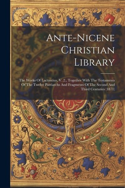 This comprehensive volume is a collection of early Christian writings from the Ante-Nicene period, compiled and translated in the 19th century by Alexander Roberts and James Donaldson. This volume includes works of Lactantius as well as the Testaments of the Twelve Patriarchs and fragments of other early Christian texts, providing valuable insights into the intellectual and spiritual life of the early Church. This work has been selected by scholars as being culturally important, and is part of the knowledge base of civilization as we know it. This work is in the "public domain in the United States of America, and possibly other nations. Within the United States, you may freely copy and distribute this work, as no entity (individual or corporate) has a copyright on the body of the work. Scholars believe, and we concur, that this work is important enough to be preserved, reproduced, and made generally available to the public. We appreciate your support of the preservation process, and thank you for being an important part of keeping this knowledge alive and relevant.