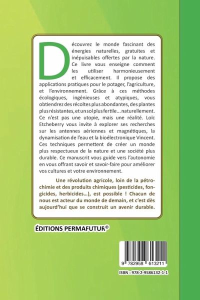 Par le passé, les Chinois pratiquaient ce que l'on peut qualifier d'acupuncture de la terre. Ils plantaient des tiges métalliques dans le sol ce qui avait pour but d'harmoniser le lieu avec les énergies environnantes. En électroculture, c'est cette même philosophie qui peut être appliquée pour soigner la Terre, favoriser le bien être global d'un jardin, de cultures, grâce à une harmonisation énergétique. Depuis l'Abbé Bertholon, Jean Nollet ou encore Justin Etienne Christofleau, de nombreux chercheurs dans l'histoire ont oeuvré à créer des antennes aériennes / magnétiques toujours plus perfectionnées et performantes. La littérature historique ne manque pas d'exemples et d'expérimentations sur le sujet ! Une antenne pourra donc permettre, tels les arbres, de stimuler les échanges bioénergétiques bénéfiques pour le vivant dans le but de favoriser la vigueur, la croissance, la résistance à la sécheresse et aux maladies des végétaux et des cultures... Les systèmes que je développerai dans ce livre sont plus ou moins aisés à mettre en oeuvre mais une fois en place, ils fonctionneront de manière naturelle et gratuite. D'où proviennent ces techniques ? Comment fonctionnent-elles ? Quelles en sont les différentes applications ? C'est une histoire très riche qui gravite autour des antennes aériennes type paratonnerre et des antennes magnétiques . Elles peuvent s'exporter ensuite pour le bonheur et le bien-être du potager, du champ, du verger, de la vigne, de la dynamisation de l'eau... C'est là que l'on comprend le nombre d'applications possibles ! Je vous propose donc dans ce deuxième ouvrage qui suit mon premier Tours d'énergie et basalte paramagnétique de poursuivre notre aventure dans ce vaste domaine libre et émancipateur qu'est: l'Electroculture ou Agriculture énergétique . Ainsi vous pourrez comprendre concrètement comment appliquer à votre propre contexte ces techniques parfois mystérieuses. Nous allons d'abord suivre la piste des origines et de l'histoire de l'antenne aérienne type paratonnerre . Vous pourrez notamment découvrir des images et des articles presses d'archives et même parfois re-colorisés par mes soins. C'est une véritable enquête d'une dizaine d'années que j'ai souhaité vous communiquer par ce biais; nous allons donc suivre ensemble les traces de l'histoire qui fait vibrer nos coeurs. Ceci nous permettra de mieux comprendre ensuite le fonctionnement et les diverses utilisations des antennes aériennes . Ensuite, en complément, nous verrons les applications des aimants avec l'antenne magnétique ainsi que différentes combinaisons possibles que vous pourrez vous approprier. Au final, un parallèle sera fait avec la bioélectronique Louis Claude Vincent . A partir de ces faits, nous verrons aussi qu'il existe des outils et appareils de mesure concrets pour analyser les effets de ces systèmes atypiques sur les plantes, le sol, les cultures...