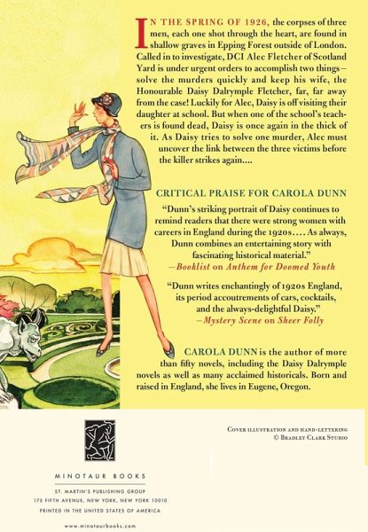 In the Spring of 1926, the corpses of three men are found in shallow graves off the beaten path in Epping Forest outside of London-each shot through the heart and bearing no identification. DCI Alec Fletcher of Scotland Yard, the lead detective, is immediately given two urgent orders by his supervisor at the Yard: solve the murders quickly and keep his wife, the Honourable Daisy Dalrymple Fletcher, away from the case! Thankfully, Daisy's off visiting their daughter at school. But when a teacher is found dead, Daisy is once again in the thick of it. As Daisy tries to solve one murder, Alec discovers that the three victims in his case were in the same Army company during World War I, that their murders are likely related to specific events that unfolded during that tragic conflict, and that, unless the killer is revealed and stopped, those three might only be the beginning.