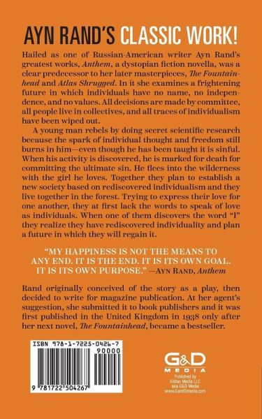 Hailed as one of Russian-American writer Ayn Rand's greatest works, Anthem, a dystopian fiction novella, was a clear predecessor to her later masterpieces, The Fountainhead and Atlas Shrugged.