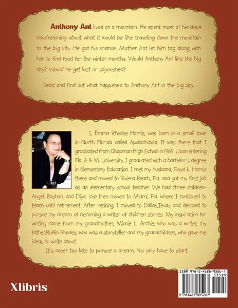 Anthony Ant lived on a mountain. He spent most of his days daydreaming about what it would be like traveling down the mountain to the big city. He got his chance. Mother Ant let him tag along with her to find food for the winter months. Would Anthony Ant like the big city? Would he get lost or squooshed? Read and find out what happened to Anthony Ant in the big city.