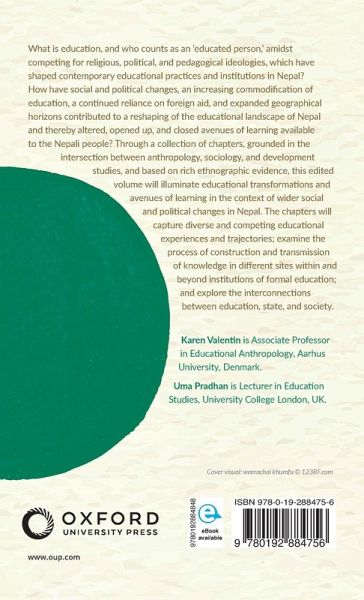 Karen Valentin, Associate Professor, Department of Educational Anthropology, School of Education, Aarhus University, Denmark. She completed her PhD in anthropology from the University of Copenhagen in 2002 and has conducted research in Nepal, India, Vietnam, and Denmark within the fields of education, migration, urban life, and youth since the mid-1990s. Her research has focused on the role of education in interrelated processes of geographical and social mobility in the context of conflict-related migration from Nepal to India and in student migration from Nepal to Denmark. She has been engaged in various research activities in collaboration with Tribhuvan University and Kathmandu University as well as interdisciplinary research on public finance in education in Nepal. Uma Pradhan is Departmental Lecturer, South Asian Studies, University of Oxford, UK. She holds a D.Phil from the University of Oxford and uses ethnographic methods to explore social meanings of education and the larger processes of state-society interaction in its production.
