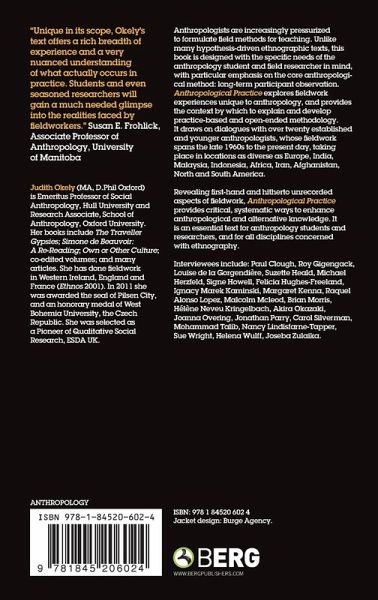 "What makes this work distinctive from other publications about ethnographic methods is that the author provides detailed accounts from interviews she conducted with anthropologists whom she asked to reflect on their fieldwork experiences ... Those with fieldwork experience including graduate students, newly graduated Ph.Ds., and seasoned anthropologists will enjoy Judith Okely's and her colleagues' perspectives about fieldwork. For those who want to reflect on ethnographic methods and its purposes, I highly recommend it. - American Ethnologist - Judith Singleton The author has done admirable research on anthropological fieldwork methods and the contribution of different scholars . . . The book is a rich anthropological work and it is worth praising for citing so many anthropological works with such an immense exposure to the great many scholars of anthropology . . . For someone aware of the richness and beauty of anthropology and looking for critiques to the works of anthropology, this is the right book. - Anthropological Notebooks - Rimai Joy, Amity University, India [Anthropological Practice] is certainly a successful and rewarding tour. Okely writes with passion, humour and clarity ... [She] rigorously and consistently demonstrates her arguments and insights throughout. - Qualitative Research Unique in its scope, Okely's text offers a rich breadth of experience and a very nuanced understanding of what actually occurs in practice. Students and even seasoned researchers will gain a much needed glimpse into the realities faced by fieldworkers. - Susan E. Frohlick, Associate Professor of Anthropology, University of Manitoba [Anthropological Practice] thoroughly elaborates on conceptual categories and commonly accepted assumptions regarding this subject. It is an extremely useful resource for anthropologists, students, professional social researchers and research trainees ... this book is an indispensable tool that should be included in every list of suggested readings on anthropology and ethnography. - Social Anthropology"