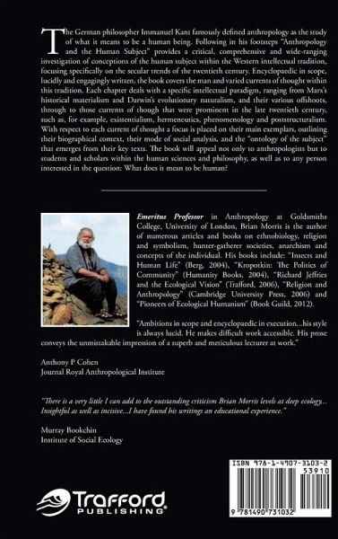 The German philosopher Immanuel Kant famously defined anthropology as the study of what it means to be a human being. Following in his footsteps "Anthropology and the Human Subject" provides a critical, comprehensive and wide-ranging investigation of conceptions of the human subject within the Western intellectual tradition, focusing specifically on the secular trends of the twentieth century. Encyclopaedic in scope, lucidly and engagingly written, the book covers the man and varied currents of thought within this tradition. Each chapter deals with a specific intellectual paradigm, ranging from Marx's historical materialism and Darwin's evolutionary naturalism, and their various off shoots, through to those currents of though that were prominent in the late twentieth century, such as, for example, existentialism, hermeneutics, phenomenology and poststructuralism. With respect to each current of thought a focus is placed on their main exemplars, outlining their biographical context, their mode of social analysis, and the "ontology of the subject" that emerges from their key texts. The book will appeal not only to anthropologists but to students and scholars within the human sciences and philosophy, as well as to any person interested in the question: What does it mean to be human? "Ambitions in scope and encyclopaedic in execution...his style is always lucid. He makes difficult work accessible. His prose conveys the unmistakable impression of a superb and meticulous lecturer at work." Anthony P Cohen Journal Royal Anthropological Institute "There is a very little I can add to the outstanding criticism Brian Morris levels at deep ecology...Insightful as well as incisive...I have found his writings an educational experience." Murray Bookchin Institute of Social Ecology