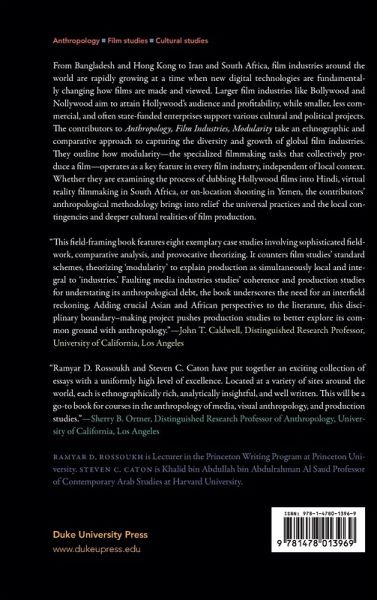 From Bangladesh and Hong Kong to Iran and South Africa, film industries around the world are rapidly growing at a time when new digital technologies are fundamentally changing how films are made and viewed. Larger film industries like Bollywood and Nollywood aim to attain Hollywood's audience and profitability, while smaller, less commercial, and often state-funded enterprises support various cultural and political projects. The contributors to Anthropology, Film Industries, Modularity take an ethnographic and comparative approach to capturing the diversity and growth of global film industries. They outline how modularity-the specialized filmmaking tasks that collectively produce a film-operates as a key feature in every film industry, independent of local context. Whether they are examining the process of dubbing Hollywood films into Hindi, virtual reality filmmaking in South Africa, or on-location shooting in Yemen, the contributors' anthropological methodology brings into relief the universal practices and the local contingencies and deeper cultural realities of film production. Contributors. Steven C. Caton, Jessica Dickson, Kevin Dwyer, Tejaswini Ganti, Lotte Hoek, Amrita Ibrahim, Sylvia J. Martin, Ramyar D. Rossoukh