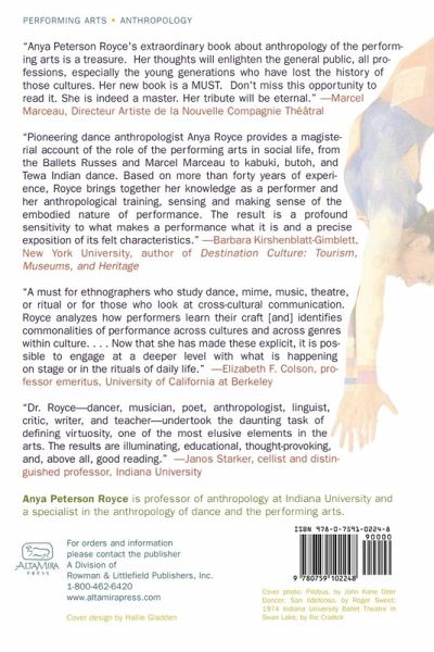 Anya Peterson Royce turns the anthropological gaze on the performing arts, attempting to find broad commonalities in performance, art, and artists across space, time, and culture. She asks general questions as to the nature of artistic interpretation, the differences between virtuosity and artistry, and how artists interplay with audience, aesthetics, and style. To support her case, she examines artists as diverse as Fokine and the Ballets Russes, Tewa Indian dancers, 17th century commedia dell'arte, Japanese kabuki and butoh, Zapotec shamans, and the mime of Marcel Marceau, adding her own observations as a professional dancer in the classical ballet tradition. Royce also points to the recent move toward collaboration across artistic genres as evidence of the universality of aesthetics. Her analysis leads to a better understanding of artistic interpretation, artist-audience relationships, and the artistic imagination as cross-cultural phenomena. Over 29 black and white photographs and drawings illustrate the wide range of Royce's cross-cultural approach. Her well-crafted volume will be of great interest to anthropologists, arts researchers, and students of cultural studies and performing arts.