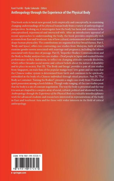 Chapter 1 Introduction: Experiences of the Physical Body.- Part I Body and Space.- Chapter 2 The Social Body of Women: Patriarchal Ideology and Women-centred Kin Networks among Chinese Households in Malaysia.- Chapter 3 A Body Out of Place: Pollution and Pregnancy of Hakka Chinese in Sarawak, Malaysia.- Part II Imperfect Bodies: Communication and the Body as Media.- Chapter 4 The Embodiment of the Deaf in Japan: A Set of Heuristic Models for Identity, Belonging and Sign Language Use.- Chapter 5 Playing about with Our Imperfect Bodies: Representations of Physical 'Disability' in Balinese Mask Drama Topeng.