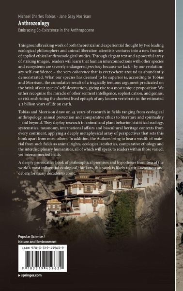 This groundbreaking work of both theoretical and experiential thought by two leading ecological philosophers and animal liberation scientists ventures into a new frontier of applied ethical anthrozoological studies. Through lean and elegant text, readers will learn that human interconnections with other species and ecosystems are severely endangered precisely because we lack - by our evolutionary self-confidence - the very coherence that is everywhere around us abundantly demonstrated. What our species has deemed to be superior is, according to Tobias and Morrison, the cumulative result of a tragically tenuous argument predicated on the brink of our species' self-destruction, giving rise to a most unique proposition: We either recognize the miracle of other sentient intelligence, sophistication, and genius, or risk enshrining the shortest lived epitaph of any known vertebrate in earth's 4.1 billion years of life.