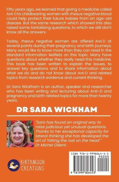 Fifty years ago, we learned that giving a medicine called Anti-D to childbearing women with rhesus negative blood could help protect their future babies from an age-old disease. But the same research which showed this also raised some tantalising questions, to which we still don't know all the answers. Today, rhesus negative women are offered Anti-D at several points during their pregnancy and birth journeys. Many would like to know more than they can read in the standard information leaflets on this topic. Many have questions about whether they really need this medicine. This book has been written to explain the issues, to answer key questions and to share information about what we do and do not know about Anti-D and related topics from research evidence and current thinking. Dr Sara Wickham is an author, speaker and researcher who has been writing and lecturing about Anti-D and pregnancy and birth related topics for more than twenty years. "Sara Wickham has found an original way to raise judicious yet unusual questions. Thanks to her exceptional capacity for lateral thinking she has developed the art of 'hitting the nail on the head'. The genuine pioneers are those who raise the right questions at the right time." Dr Michel Odent, Founder, Primal Health Research Centre. Foreword by Dr Michel Odent.