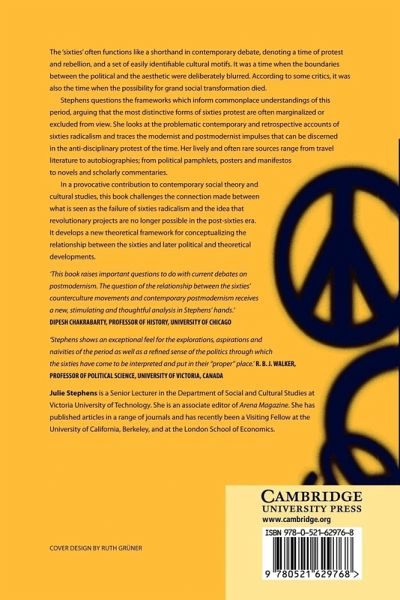 The sixties was a time when the boundaries between the political and the aesthetic were deliberately blurred and, according to some critics, the time when the possibility for grand social transformation died. Stephens questions the frameworks that inform commonplace understandings of this period, arguing that the most distinctive forms of sixties protest are often marginalized or excluded from view. She looks at the problematic contemporary and retrospective accounts of sixties radicalism, and traces the modernist and postmodern impulses that can be discerned in the anti-disciplinary protest of the time. Stephens develops a new theoretical framework for conceptualizing the relationship between the sixties and later political and theoretical developments.