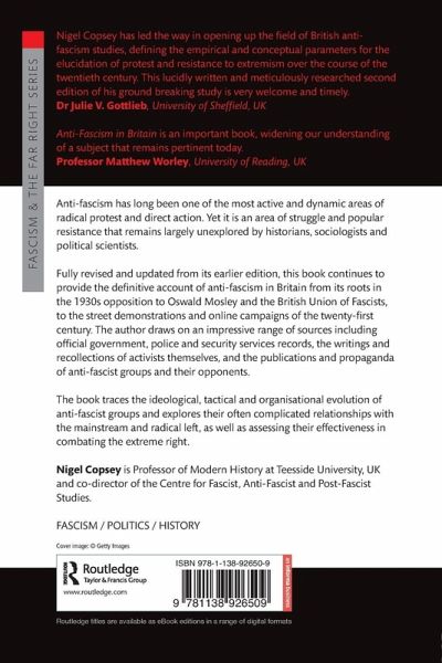 Nigel Copsey has led the way in opening up the field of British anti-fascism studies, defining the empirical and conceptual parameters for the elucidation of protest and resistance to extremism over the course of the twentieth century. This lucidly written and meticulously researched second edition of his ground breaking study is very welcome and timely. - Dr Julie V. Gottlieb, University of Sheffield, UK