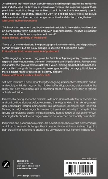 Anti-porn feminism is back. Countering the ongoing 'pornification' of Western culture and society, with lads' mags on the middle shelf and lap-dancing clubs in residential areas, anti-porn movements are re-emerging among a new generation of feminist activists worldwide. This essential new guide to the problems with porn starts with a history of modern pro and anti political stances before examining the ways in which the new arguments and campaigns around pornography are articulated, deployed and received. Drawing on original ethnographic research, it provides an in-depth analysis of the groups campaigning against the pornography industry today, as well as some eye-opening facts about the damage porn can do to women and society as a whole. This unique and inspiring book explains the powerful comeback of anti-porn feminism, and it controversially challenges liberal perspectives and the mainstreaming of a porn culture that threatens to change the very nature of our intimate relationships.