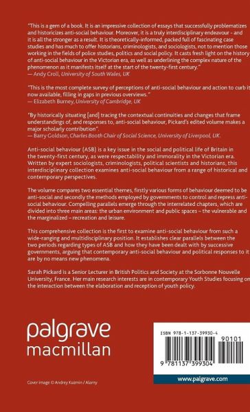 There are contributions from disciplines including sociology, criminology, history and politics. This provides a rich multi-dimensional perspective on both the contemporary and Victorian approaches to 'anti-social behaviour'... Overall, this book makes a significant contribution to knowledge and should be of interest to scholars from a broad range of disciplines" - Criminology & Criminal Justice 15(4)