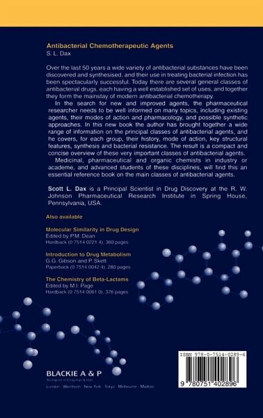 Over the past 50 years a wide variety of antibacterial substances have been discovered and synthesised, and their use in treating bacterial infection has been spectacularly successful. Today there are several general classes of antibacterial drugs, each having a well established set of uses, and together they form the mainstay of modern antibacterial chemotherapy. In search for new and improved agents, the pharmaceutical researcher needs to be well informed on many topics, including existing agents, their modes of action and pharmacology, and possible synthetic approaches. In this new book the author has brought together a wide range of information on the principal classes of antibacterial agents, and he covers, for each group, their history, mode of action, key structural features, synthesis and bacterial resistance. The result is a compact and concise overview of these very important classes of antibacterial agents.