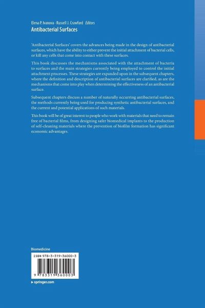 'Antibacterial Surfaces' covers the advances being made in the design of antibacterial surfaces, which have the ability to either prevent the initial attachment of bacterial cells, or kill any cells that come into contact with these surfaces.