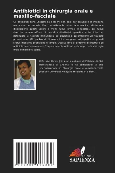 Gli antibiotici sono utilizzati da decenni non solo per prevenire le infezioni, ma anche per curarle. Per combattere la minaccia microbica, abbiamo a disposizione questi vecchi e molti nuovi farmaci miracolosi. Le nuove ricerche mirano all'uso di peptidi antibatterici, genetica e tecniche per potenziare la risposta immunitaria del paziente e garantiscono un risultato promettente. Gli antibiotici di uso clinico vengono sviluppati con grandi sforzi, massima precisione e tempo. Questo libro si propone di illustrare gli antibiotici comunemente e frequentemente utilizzati nel campo della chirurgia orale e maxillo-facciale.