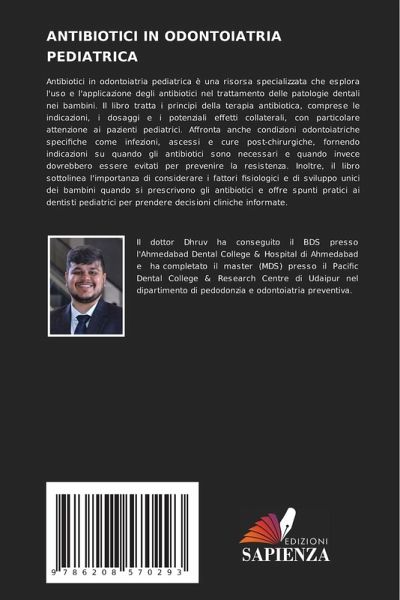 Antibiotici in odontoiatria pediatrica è una risorsa specializzata che esplora l'uso e l'applicazione degli antibiotici nel trattamento delle patologie dentali nei bambini. Il libro tratta i principi della terapia antibiotica, comprese le indicazioni, i dosaggi e i potenziali effetti collaterali, con particolare attenzione ai pazienti pediatrici. Affronta anche condizioni odontoiatriche specifiche come infezioni, ascessi e cure post-chirurgiche, fornendo indicazioni su quando gli antibiotici sono necessari e quando invece dovrebbero essere evitati per prevenire la resistenza. Inoltre, il libro sottolinea l'importanza di considerare i fattori fisiologici e di sviluppo unici dei bambini quando si prescrivono gli antibiotici e offre spunti pratici ai dentisti pediatrici per prendere decisioni cliniche informate.