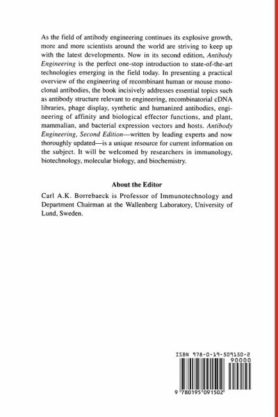 As the field of antibody engineering continues its explosive growth, more and more scientists around the world are striving to keep up with the latest developments. Now in its second edition, Antibody Engineering is the perfect one-stop introduction to state-of-the-art technologies emerging in the field today. In presenting a practical overview of the engineering of recombinant human or mouse monoclonal antibodies, the book incisively addresses essential topics such as antibody structure relevant to engineering, recombinatorial cDNA libraries, phage display, synthetic and humanized antibodies, engineering of affinity and biological effector functions, and plant, mammalian, and bacterial expression vectors and hosts. Antibody Engineering, Second Edition - written by leading experts and now thoroughly updated - is a unique resource for current information on the subject. It will be welcomed by researchers in immunology, biotechnology, molecular biology, and biochemistry.