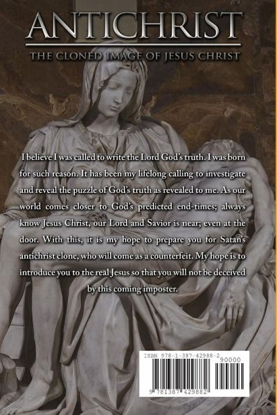 I believe I was called to write the Lord God's truth. I was born for such reason. It has been my lifelong calling to investigate and reveal the puzzle of God's truth as revealed to me. As our world comes closer to God's predicted end-times; always know Jesus Christ, our Lord and Savior is near; even at the door. With this, it is my hope to prepare you for Satan's antichrist clone, who will come as a counterfeit. My hope is to introduce you to the real Jesus so that you will not be deceived by this coming imposter