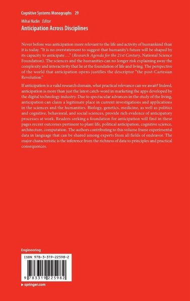 If anticipation is a valid research domain, what practical relevance can we await? Indeed, anticipation is more than just the latest catch-word in marketing the apps developed by the digital technology industry. Due to spectacular advances in the study of the living, anticipation can claim a legitimate place in current investigations and applications in the sciences and the humanities. Biology, genetics, medicine, as well as politics and cognitive, behavioral, and social sciences, provide rich evidence of anticipatory processes at work. Readers seeking a foundation for an