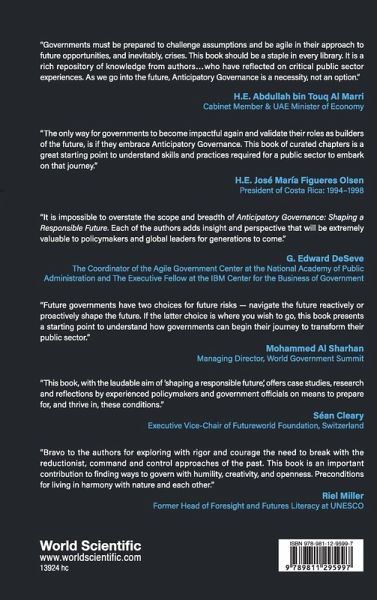 Anticipatory Governance is the systemic process of future shaping built on the understanding that the future is not a continuation of the past or present, thus making foresight a complex task requiring the engagement of the whole of government with its constituents in a constructive and iterative manner to achieve collective intelligence. Effective anticipatory governance amplifies the fundamental properties of agile government to build trust, challenge assumptions, and reach consensus. Moreover, anticipatory governance sets the foundation to adapt to exponential change. This seismic shift in the governance environment should lead to urgent rethinking of the ways and means governments and large corporate players formulate strategies, design processes, develop human capital and shape instiutional culture to achieve public value. From a long-term multigenerational perspective, anticipatory governance is a key component to ensure guardrails for the future. Systems thinking is needed to harness our collective intelligence, by tapping into knowledge trapped within nations, organizations, and people. Many of the wicked problems governments and corporations are grappling with like artificial intelligence applications and ethics, climate change, refugee migration, education for future skills, and health care for all, require a "system of systems", or anticipatory governance. Yet, no matter how much we invest in foresight and shaping the future, we still need an agile government approach to manage unintended outcomes and people's expectations. Crisis management which begins with listening to weak signals, sensemaking, intelligence management, reputation enhancement, and public value alignment and delivery, is critical. This book dives into the theory and practice of anticipatory governance and sets the agenda for future research.