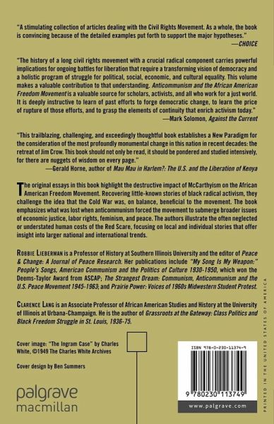'The history of a long civil rights movement with a crucial radical component carries powerful implications for ongoing battles for liberation that require a transforming vision of democracy and a holistic program of struggle for political, social, economic and cultural equality. This volume makes a valuable contribution to that understanding. Anticommunism and the African American Freedom Movement is a valuable source for scholars, activists and all who work for a just world. It is deeply instructive to learn of past efforts to forge democratic change, to learn the price of rupture of those efforts and to grasp the elements of continuity that enrich activism today.' - Mark Solomon, Against the Current
