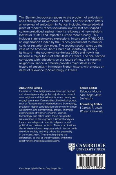 This Element introduces readers to the problem of anticultism and antireligious movements in France. It offers an overview of anticultism in France, discusses the case of American-born Church of Scientolog, and concludes with reflections on the future of new and minority religions in France.