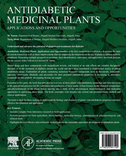 Antidiabetic Medicinal Plants: Applications and Opportunities presents new developments that are impacting the use of plants to address diabetic conditions. Presenting multiple perspectives on these plants, their identification, cultivation and application, this book presents the state-of-the-art with an eye toward the future. Presented in five parts, the book first provides an overview of plants with antidiabetic properties, then moves to the agricultural practices for the cultivation and production of those plants. Part Three focuses on the chemical composition and phytochemicals of the plants before then moving into a study of the physiological, biotechnological, and molecular approaches to optimizing these plants. The book concludes with insights into current and potential future medical and clinical applications, making it ideal for those seeking to understand the biology and chemistry of plants with anti-diabetic properties and their effective development and application.