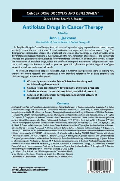 This collection of cutting-edge reviews comprehensively examines the current status of novel antifolates, an important class of anticancer drugs. The distinguished contributors discuss the preclinical and clinical pharmacology of methotrexate, other dihydrofolate reductase inhibitors, 5-fluorouracil, and the new generation of antifolates-the thymidylate synthase and glycinamide ribonucleotide formyltransferase inhibitors. In addition, they review in depth the modulation of antifolate drugs, folate and antifolate transport mechanisms, polyglutamation, resistance, and drug combinations, as well as pharmacogenomics, pharmacodynamics, regulation of gene expression, and mechanisms of cell death. Antifolate Drugs in Cancer Therapy provides entré to exciting new avenues for future research and constitutes a new standard reference for all basic scientists and clinicians engaged in cancer therapeutics.