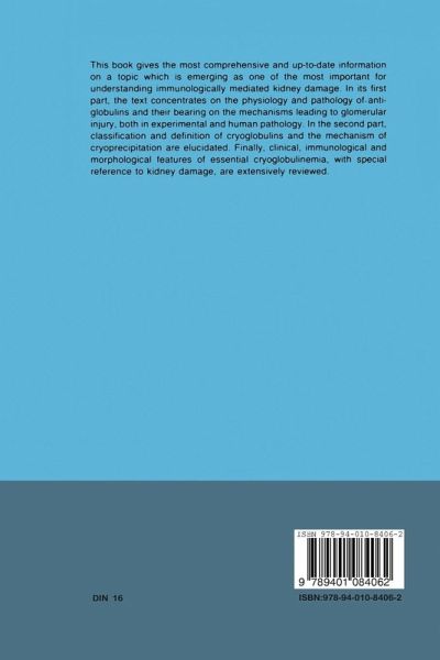 I. Physiology and Pathology of Antiglobulins.- 1. Subsets of Rheumatoid Factors Determined by Cross Idiotypes.- 2. Structure and Function of Rheumatoid Factors: Implication For Its Role in The Pathogenesis of Mixed Cryoglobulinemia.- 3. Regulatory Idiotypes and Diseases.- II. Role of Antiglobulins in Experimental Glomerulonephritis.- 4. Pathogenetic Mechanisms of Infective Endocarditis Glomerulonephritis in The Rabbit.- 5. Interactions of Human IgM Rheumatoid Factors With Immune Complexes in Experimental Murine Glomerulonephritis.- 6. Anti-Idiotypic Antibodies in Glomerulonephritis and in Tubulointerstitial Nephritis Models in Immune Renal Injury.- 7. Experimental Analysis of The Generation of Pathogenic Immune Complexes Resulting From Immunoglobulin Interactions.- III. Classification of Cryoglobulins and Biochemical Factors Inducing Cryoprecipitation.- 8. Classification of Cryoglobulinemias.- 9. Intrinsic Properties Inducing Precipitation of Cryoglobulins.- 10. Cryoprecipitation as a Consequence of Globulin-Antiglobulin Interactions.- 11. Fibronectin Is a Regular Component of Single-Type and Mixed Cryoglobulins.- IV. Immunological Aspects of Essential Mixed Cryoglobulinemia.- 12. Complement Activation in Patients With Mixed Cryoglobulinemia.- 13. Human Type II Mixed Cryoglobulins as a Model of Idiotypic Interactions.- 14. Monoclonal Antibodies to Idiotypic Determinants on Monoclonal Rheumatoid Factors.- V. Clinical and Morphological Findings in Essential Mixed Cryoglobulinemia.- 15. Mixed Cryoglobulinemia: An Update of Recent Clinical Experience.- 16. Histological and Himmunohistological Features in Essential Mixed Cryoglobulinemia Glomerulonephritis.- 17. Clinical and Histological Correlations in Essential Mixed Cryoglobulinemia (EMC) Glomerulonephritis.- 18. Ultrastructural Features in Glomerulonephritis in Essential Mixed Cryoglobulinemia.- 19. Prognostic Factors in Essential Mixed Cryoglobulinemia Nephropathy.- VI. Different Therapeutic Regimens in the Management of EMC Patients.- 20. Long-Term Management of Essential Mixed Cryoglobulinemia.- 21. Effects of Cryoapheresis on Plasma Cryoglobulins and Renal Function in Patients With EMC Glomerulonephritis.- 22. Treatment of Renal Disease in Essential Mixed Cryoglobulinemia.- 23. Long Term Treatment of Mixed Cryoglobulinemia (MCG).- Concluding remarks.