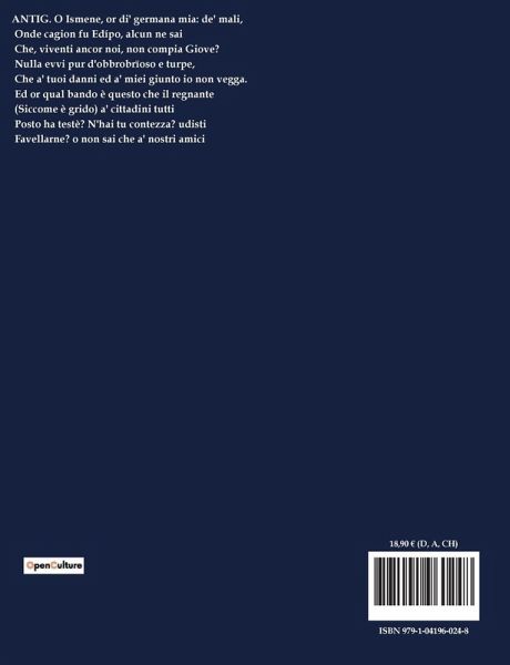 Un grido di dolore e di ribellione risuona attraverso i secoli: Antigone, la giovane eroina di Sofocle, sfida le leggi degli uomini per onorare quelle divine. Ambientata nella Tebe mitologica, questa tragedia classica esplora il conflitto tra l'autorità statale e la coscienza individuale. Antigone, figlia di Edipo, si trova di fronte a una scelta impossibile: obbedire al decreto del re Creonte, che proibisce la sepoltura del fratello Polinice, o seguire il suo cuore e le leggi non scritte degli dèi. La sua decisione di dare sepoltura al fratello, nonostante il divieto, la conduce a un tragico destino, mettendo in luce la tensione tra dovere e pietà, tra legge e giustizia. Parallelamente, in "Elettra", Sofocle ci trasporta nel regno di Micene, dove la vendetta e il dolore si intrecciano in una trama di passioni e tradimenti. Elettra, figlia di Agamennone, è consumata dal desiderio di vendicare l'assassinio del padre, orchestrato dalla madre Clitennestra e dal suo amante Egisto. La sua determinazione incrollabile e il suo dolore profondo la spingono a un'alleanza con il fratello Oreste, in un dramma che esplora i limiti della vendetta e le conseguenze della violenza familiare. Queste opere di Sofocle non sono solo racconti di antiche tragedie, ma riflessioni senza tempo sulla natura umana e sui dilemmi morali che affrontiamo ancora oggi. Attraverso la rappresentazione di personaggi complessi e situazioni estreme, Sofocle ci invita a riflettere sulla giustizia, la lealtà e il coraggio di seguire le proprie convinzioni. Le sue tragedie ci offrono una lente attraverso cui esaminare le nostre stesse vite, sfidandoci a considerare cosa significhi veramente essere giusti e umani.