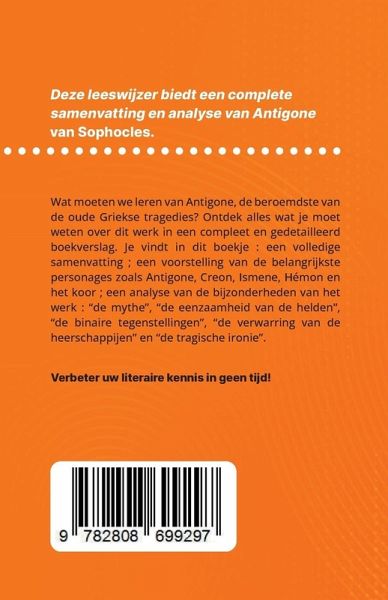 Wat moeten we leren van Antigone, de beroemdste van de oude Griekse tragedies? Ontdek alles wat je moet weten over dit werk in een compleet en gedetailleerd boekverslag. Je vindt in dit boekje : - Een volledige samenvatting - Een voorstelling van de belangrijkste personages zoals Antigone, Creon, Ismene, Hémon en het koor - Een analyse van de bijzonderheden van het werk: de mythe, de eenzaamheid van de helden, de binaire tegenstellingen, de verwarring van de heerschappijen en de tragische ironie Een referentieanalyse om snel de betekenis van het werk te begrijpen.
