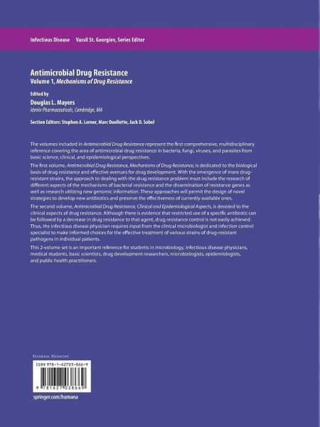 This ? rst edition of Antimicrobial Drug Resistance grew out of a desire by the editors and authors to have a comprehensive resource of information on antimicrobial drug resistance that encompassed the current information available for bacteria, fungi, protozoa and viruses. We believe that this information will be of value to clinicians, epidemiologists, microbiologists, virologists, parasitologists, public health authorities, medical students and fellows in training. We have endeavored to provide this information in a style which would be accessible to the broad community of persons who are concerned with the impact of drug resistance in our cl- ics and across the broader global communities. Antimicrobial Drug Resistance is divided into Volume 1 which has sections covering a general overview of drug resistance and mechanisms of drug resistance ? rst for classes of drugs and then by individual microbial agents including bacteria, fungi, protozoa and viruses. Volume 2 addresses clinical, epidemiologic and public health aspects of drug resistance along with an overview of the conduct and interpretation of speci? c drug resistance assays. Together, these two volumes offer a comprehensive source of information on drug resistance issues by the experts in each topic.
